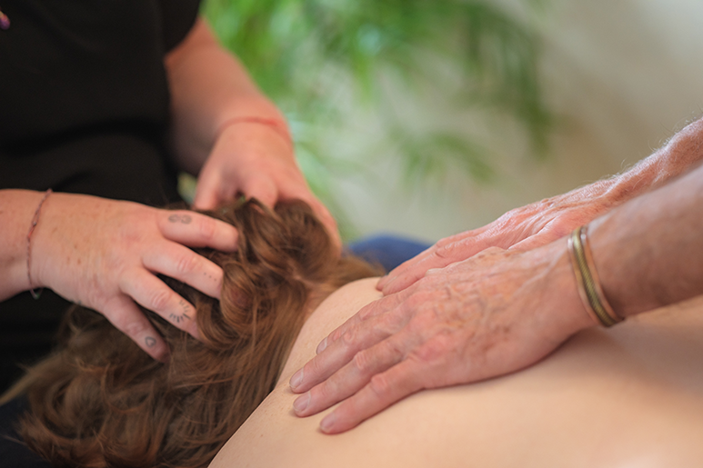 Deze koesterende massage bestaat uit lange, vloeiende bewegingen waarbij liefdevol verschillende delen van het lichaam tegelijk worden gemasseerd. Ik werk hierbij veel met mijn handen en onderarmen.